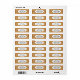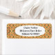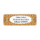 Estes endereços de retorno rotulam um design geométrico de quadrados manipulados em laranja, castanho, tons de verde num campo de creme.