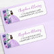 Etiqueta de Endereço de Retorno de Garota Floral de Watercolor. Esta doce etiqueta de endereço retorna apresenta uma design de aquarela com rosas roxos, folhas verdes, e uma garota com um vestido roxo brilhante com uma tiara, todas colocadas do lado esquerdo. Seu nome aparece em um guião roxo delicado, enquanto o endereço é impresso em uma fonte clássica de serifa preta à direita. O tema da trabalho de arte floral suave e encantadora princesa cria um aspecto elegante e caprichoso, perfeito para convites da Quinceañera, festas de aniversário, ou notas especiais de agradecimento. Todos os textos, fontes e cores podem ser personalizados para corresponder ao seu estilo