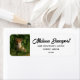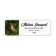 Etiquetas de endereço com uma fotografia que inclui uma raposa de bebê com pele vermelha e branca. Cercados por folhas e gramíneas verdes e peludas.