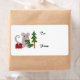 Uma cena fofinha com um rato de Natal segurando um cheio de queijo. Um presente vermelho e uma árvore de Natal ao seu lado. Personalizar conforme desejado.