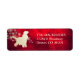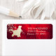 Esta etiqueta distintiva de endereço de retorno apresenta uma silhueta dourada Inglês Cocker Spaniel em frente a um spray de flocos de neve de ouro ornamentado. A imagem é colocada sobre um fundo vermelho intenso gradiente que parece quase brilhar. Seu texto personalizado está em ouro pálido correspondente à direita da imagem. Linda!