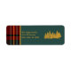 Tartão vermelho e verde Marca de endereço de volta do Feliz Natal. E floresta de árvores. Que você pode personalizar facilmente. Perfeito para uma design de Natal tradicional ou uma fazenda rústica.