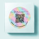 Coloque adesivos holográficos redondos com seu código QR e texto personalizado. Altere fontes e cores e mova e redimensione elementos com a ferramenta design. NOTA! VOCÊ PRECISA SUBSTITUIR O MODELO DE CÓDIGO QR POR SEU CÓDIGO QR!