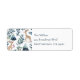 Um rótulo de endereço de retorno apresenta ilustrações originais de aquarela de renas na floresta de inverno.