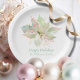 Esta etiqueta de endereço de retorno apresenta uma poinsettia de sábio pastel com bagas cor-de-rosa e realces de brilho dourado. É tão elegante que se coordena com o seu cartão de férias