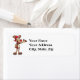 Uma das renas Papais noeis está vestindo um lenço vermelho e verde e um chapéu de Papai Noel, sorrindo e apontando para seu endereço. Etiqueta de endereço de feriado para os seus cartões de Natal!