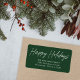 Green Calliografia Happy Holidays Return Rótulo do endereço apresenta uma caligrafia moderna.