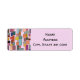 Estas etiquetas de endereço têm uma design boho moderna de retângulos ligados a linhas verticais em vários tamanhos e cores retrorreflectoras.