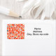 Essas etiquetas de endereço de retorno têm um design de retângulos laranja com círculos em diferentes tons de verde e azul.
