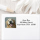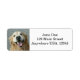 Essas etiquetas de endereço de retorno contêm uma fotografia em detalhe de um cão de recuperação de ouro feliz, em um fundo de cinza.