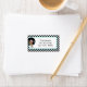 Etiqueta de endereço de 2" l x 3,75" w para corresponder ao nosso convite de "Rock and Roll" com uma imagem de um registro Rock & Roll 45 rpm e um pacote de compro de malte em uma prancha de xadrez preto e branco. O retângulo branco tem uma borda turquesa e um endereço personalizável. Consulte convite correspondente, envelope e adesivo. Consulte a coleção inteira de Etiquetas de 50 Nifty nos CONVITES | Seção Stickers & Labels