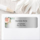 Falso fundo prateado. Decorado com uma rosa dourada e rosa bege, floral e folhagem de eucalipto e folhagem dourada falsa. Personalize e adicione seu nome e endereço. Letras pretas.