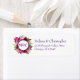 Devolva as etiquetas de endereço com um buquê floral composto por rosas de rosa claro e papoilas cor-de-rosa-escuro com muitas folhas verdes e peludas. Um quadro circular em camadas acima para colocar o(s) seu(s) dentro personalizado(s) inicial(es).