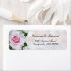 Uma rosa rosa com uma etiqueta de endereço de retorno de fundo prateado. Um estilo vitoriano com um toque moderno, perfeito para casamentos, anúncios ou aniversários.
