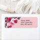 Etiqueta de endereço de tendência com rosas em tons de vermelho, rosa e branco em um fundo rosa suave. A borda superior esquerda tem uma decoração de impressão de animais leopardo. Este design chic e feminino é perfeito para celebrar um aniversário divertido com amigos e familiares. A paleta de cores é ideal para uma jovem.