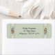 Molas deliciosas de rosas cor-de-rosa e amarelas com nãos-me-esqueço cor-de-rosa e azul num padrão de medalhões maduros e bandas verticais de cinzas poeirentas num fundo verde-menta.