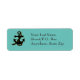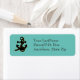 Âncora de navio preta com contorno dourado, contra um fundo verde marinho. Personalize com seu nome/informações de endereço (também em branco).