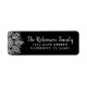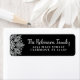 Etiqueta de endereço de retorno de modelo de floco de neve preto e prateado personalizado - Floco de neve prateado com padrão de mandala em um fundo preto. Dois modelos são incluídos para fácil personalização, um modelo de caligrafia de script encaracolado para seu nome e um modelo de fonte serif em negrito para o endereço.