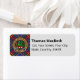 Clan MacBeth tradicional tartan com cores modernas. Campos de texto personalizados para nome e endereço.