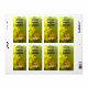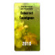 Um rótulo para vinicultores caseiros com uma foto de um monte de uva verde em uma videira com folhas de bronze sobrepostas com uma ilustração fundida de um vinho branco tinturado com gotículas líquidas.