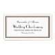Etiqueta de Vinho de Casamento de Castanho Elegante / Etiqueta de Garrafa Elegante, chic e acessórios de festas personalizáveis de na moda com uma moldura marrom. Este produto faz parte de um conjunto de designs correspondentes que são facilmente personalizáveis para muitas ocasiões e eventos. Se você precisar de placas RSVP separadas, Obrigado, notas, carimbos, ímanes, etiquetas de garrafas, menus, cartões de escolta, programas de eventos, etiquetas de favorecimento ou outros acessórios, por favor, verifique nossas outras listas. Se você não vir um produto correspondente ao qual você está interessado, ou gostaria de ver este design em cores diferentes, por favor entre em contato conosco e ficaremos felizes em acomodá-lo. Observe que esta é uma design gráfica / foto que é transferida para o produto subjacente e não contém tecidos, fita, metais, gravura, joias ou gravuras reais. 2013 ©TheMyPartyDesigns Todos os direitos reservados