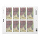 Um rótulo para vinicultores caseiros, com uma fotografia de um monte de uva vermelha púrpura numa vinha com folhas verdes sobrepostas com uma ilustração fundida de um copo de vinho tinto.