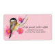 Bela ave-de-bico-de-cabeça-branca pintada em aquarela com flores rosa e roxo pintadas pela artista Jennifer Steffen. O terceiro filhote numa série de três. O Emporium da Jenn.