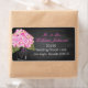Buquê rosa de hydrangea em jarro de pedras com etiqueta de fundo de chalkboard rustic de casamento.