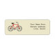 Etiqueta de endereço com ilustração de uma bicicleta vermelha à esquerda. Personalize com seu endereço à direita da bicicleta.