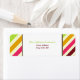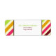 Uma etiqueta de endereço com um padrão listrado rosa, verde, dourado, laranja e burgundy em cada lado. Personalize o texto verde e burgundy no centro com seu nome e endereço. Procure por convites para chuveiros de bebês na Paperie da Jill.