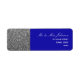 Simples, elegante, etiqueta de endereço de devolução moderno com brilho prateado e azul real. Escolha perfeita para casamentos de inverno glamorosos e contemporâneos!