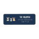 Uma etiqueta de endereço de retorno com caracteres de Natal bonitos. Coelhos de Natal com orelhas compridas vestindo lenços quentes com flocos de neve caindo sobre eles. Rótulo de endereço de retorno com endereço e sobrenome