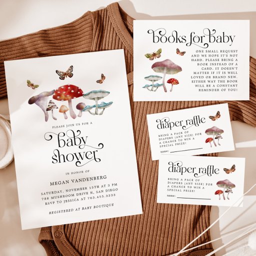 Rótulo de endereço de retorno com uma ilustração dos cogumelos. Você pode usar isso para chá de fraldas ou festa de aniversário.