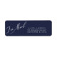 Vestir seus Anúncios em Movimento com nossas etiquetas de endereço de retorno modernas com uma fonte de script de caligrafia na moda definida em um fundo azul marinho. Anunciamentos comoventes disponíveis em nosso compro. Este item está disponível em uma grande variedade de combinações de cores!
