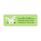 Etiquetas de endereço de retorno cômodas com ilustração cartoon de um pequeno coelho branco saindo de um buraco no chão. Nome e endereço personalizáveis.