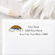 Ao verificar o correio é chato, envie uma carta com um sorriso. Esta etiqueta do endereço do arco-íris salvará sua mão de cãibras e fará o receptor sorrir quando receber algo de você. Um simples arco-íris com nuvens ao lado de texto negro com sua informação.