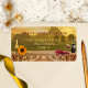 Rótulo de endereço de casamento com uma pintura de uma paisagem italiana toscana com vinho, uvas e girassol. E: alianças de casamento! Bom para um casamento temático de casamento outono ou vinho.