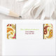 Uma etiqueta de endereço com um padrão paisley rosa, verde, dourado, laranja e burgundy em cada lado. Personalize o texto verde e burgundy no centro com seu nome e endereço. Procure por convites para chuveiros de bebês na Paperie da Jill.
