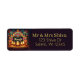 Etiqueta de endereço Festivo Diwali com texto Dourado Elegante Celebra o espírito de Diwali com esta etiqueta de endereço vibrante e personalizável, com lâmpadas de óleo tradicionais (diyas), intrincados motivos florais e uma saudação calorosa de "Happy Diwali". O lado esquerdo rompe com cor festiva e charme cultural, enquanto o lado direito oferece um fundo escuro e elegante com texto dourado para um toque refinado. Perfeito para adicionar elegância sazonal às suas mensagens de correio — este design é totalmente personalizável para se adequar aos seus detalhes pessoais ou familiares.