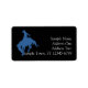 Esta etiqueta de endereço apresenta uma silhueta azul de um vaqueiro em um bronco de balanço em um fundo preto. Editar ou excluir o texto de amostra.
