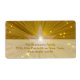 Design moderno com ouro brilhante e brilhante e estrela branca num fundo dourado brilhante. Etiqueta de endereço com um design personalizável para personalizar com seu próprio texto, imagens e ideias. Criado por Jess Perry usando fotografias originais e técnicas digitais.