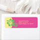 Rótulo de endereço moderno e colorido com um tema Luau ou Havaiano. Apresenta hibisco com um padrão de bolinhas de tendência em verde sobre um fundo rosa quente. Batida alta e design. Adicione a sua própria redação.