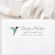 Etiqueta de endereço de retorno com um Hummingbird com garganta de rubi em fundo branco. Personalize-o adicionando seu nome e endereço. O estilo, o tamanho e a cor da fonte podem ser alterados clicando em "personalizar mais".