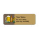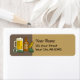 Ilustração de cerveja. Frasco, vidro, abridor, saltos e cevada. Cor de fundo personalizada. Texto personalizado para nome e endereço.