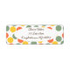 Essas etiquetas de endereço de retorno têm um design geométrico de pontos em coral, ouro e verde-sábio.