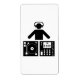 Rótulo branco com pictograma de DJ.