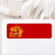 Este rótulo de Halloween apresenta um demônio de desenho animado com um garfo de jarra rodeado de chamas em fundo vermelho. Clique no botão Personalizar para alterar a cor de fundo ou adicionar seu próprio texto. Pode ser usado como etiqueta de endereço, etiqueta de presente, etiqueta de livraria, favor da parte e muito mais.