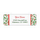Etiquetas de endereço de retorno editáveis com letras vermelhas para o seu nome e letras verdes escuras em um padrão retrorreflector de feriado de holly verde com bagas vermelhas.