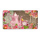 Rótulos de garrafa de água para chá de panela com um charmoso serviço de chá cor-de-rosa em um belo fundo de rosa e pérola. Esses rótulos elegantes para garrafa de água de chá de panela são facilmente personalizados com texto. Este é um design impresso sem pérolas reais, glitter, etc. Esses rótulos de garrafa de água não são à prova d'água.