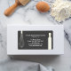 Este design de produto apresenta ilustrações de um batedor, rolo de massa e espátula. O design da ferramenta de panificação em falso ouro branco sobre um fundo cinza escuro torna rótulos de negócios de panificação modernos e únicos para padeiros e chefs de pastelaria.